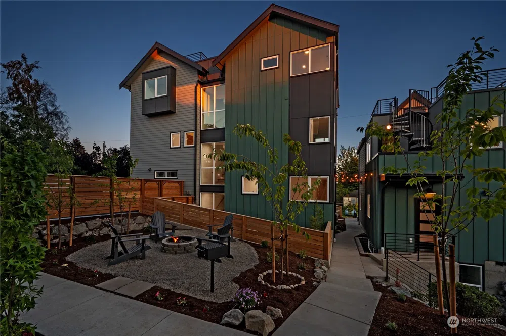 Last SFR at this project remaining! New NW Contemporary & Smart Home with views! Welcome to Arcadia, new community properties that all sit above the street for max natural light with community firepit & hammock. Seamlessly control lighting, temperature & security systems with the touch of a button or a simple voice command. Arrive home to the perfect ambiance with lights & music & temperature how you like it. Rooftop deck views are solid. 4 beds plus lower full rec room. Open kitchen with big island & walk-in pantry, gas fireplace & powder on main. Top floor hosts huge Primary Suite with bonus sitting area & 5-piece bath with heated floors. Attached garage, full size laundry room, big windows & close to Greenwood coffee/shops/restaurants.