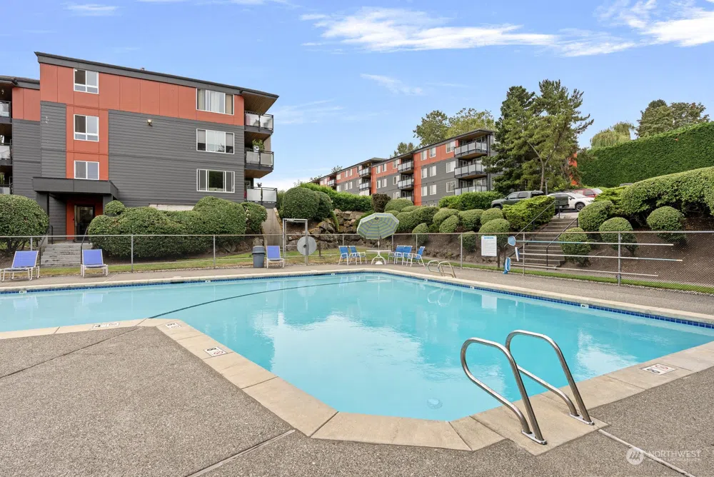 Welcome to this updated ground floor unit in the Seventy-O-One Condominiums of Seattle's Sand Point neighborhood! This complex sits on the Burke Gilman Trail just down the road from Children's Hospital and a short walk to Magnusen Park. Your bright 2 bedroom, 1.75 bath home features an en-suite bath and a pleasant covered private patio. This ground floor end unit is easy to access and quiet, with fresh paint and newer floors. The amenities of this recently renovated complex include a huge outdoor pool with cabana, saunas, bike room, gym, secure parking, a private storage unit and onsite laundry. This is a great opportunity to be part of this warm, pet friendly community in one of Seattle's most desirable locations.
