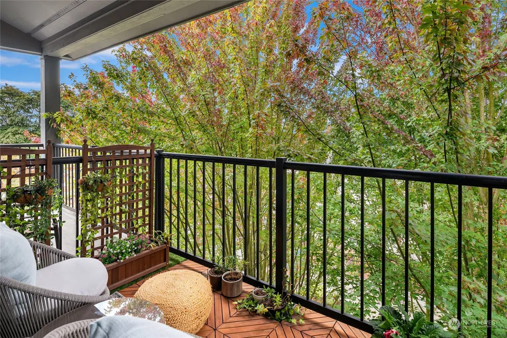 This adorable, cozy top-floor studio tucked away from the street is back on the market! Buyer’s personal circumstances changed. Upgraded in 2021 with luxury plank floors, a barely used custom Murphy bed, and a portable kitchen island. Sunlit with Western exposure. Enjoy the patio that reflects the seasons—lush green in spring and summer, vibrant fall colors, and glowing winter sunsets. Ample storage: walk-in closet, coat closet, in-unit laundry, underground parking, and extra storage. Super walkable—blocks from bus lines, minutes to Green Lake, and easy access to Seattle. Surrounded by great restaurants, coffee shops, and groceries. Relax on the rooftop deck with stunning mountain views. Ideal for a first-time buyer or rental investment!