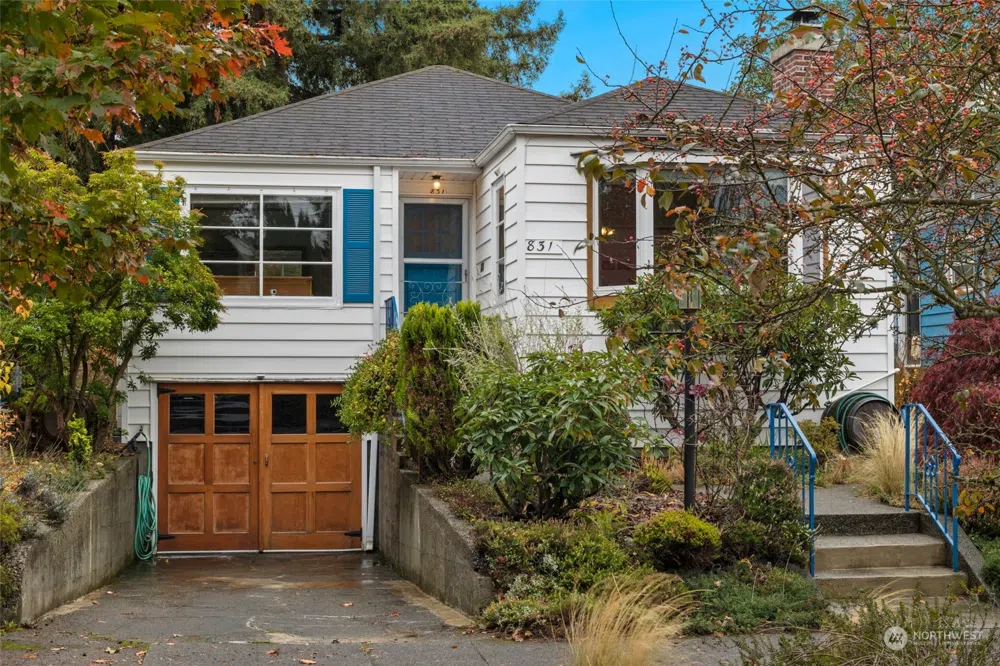 Perched above the street, this charming Ballard Cape Cod offers timeless appeal in a prime location just moments away from top-rated schools, beautiful parks, and downtown Seattle. Inside, the living room features a cozy wood-burning fireplace, original coved ceilings, and stunning oak hardwood floors that span throughout. The circular floor plan is perfect for entertaining! Large windows fill the home with natural light. The kitchen offers ample storage and original vintage tile. Two well-sized bedrooms and a full bath complete the main level. The basement provides additional living space, a potential 3rd bedroom, and ample storage. Attached 1 car garage with driveway. Tranquil front and backyards with lush gardens awaits your green thumb!